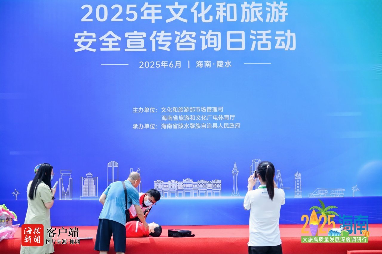 商报全媒体讯(椰网/海拔新闻记者 张艺)近日,2025年文化和旅游安全宣传咨询日活动在陵水举行。活动以“人人讲安全、个个会应急——查找身边安全隐患”为主题,通过展板展示、视频播放、发放资料、现场讲解、有奖问答等方式,进一步强化广大市民、游客以及文旅从业者的文化和旅游行业安全生产意识,提升安全防范与应急处置能力。