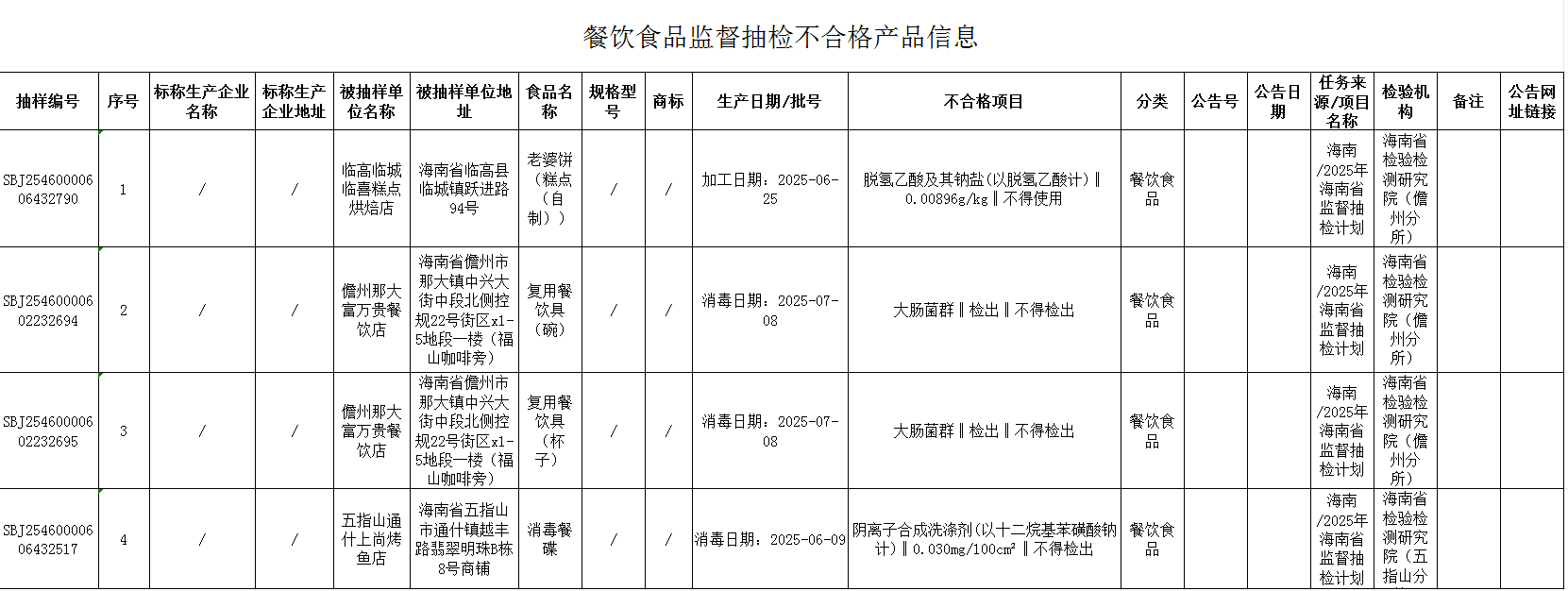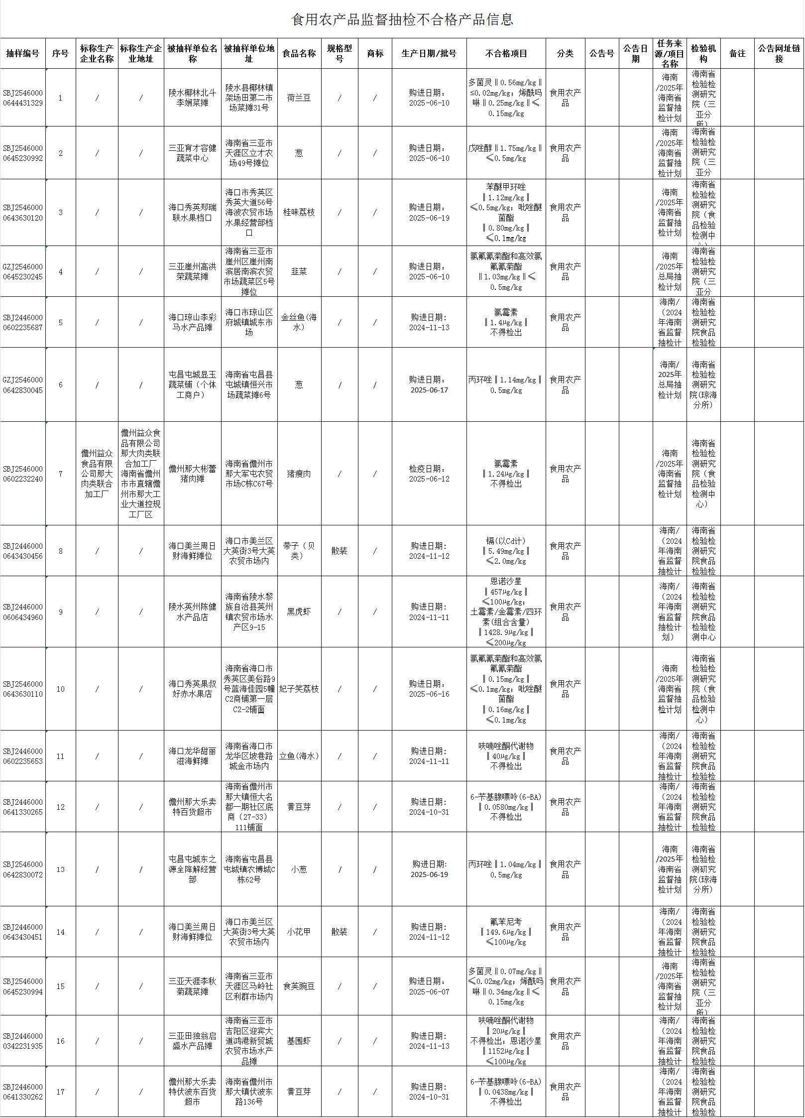 海南省市场监督管理局表示,对抽检发现的不合格产品,当地市场监管部门已开展核查处置。