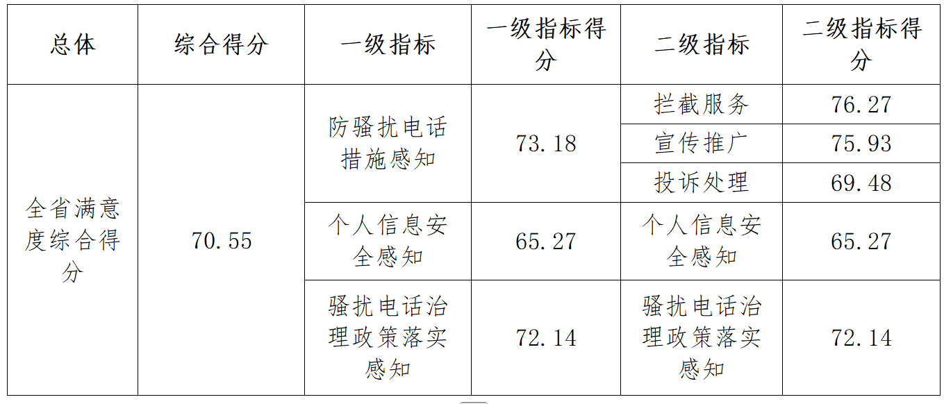 2025年河北省手机用户防骚扰电话消费者满意度调查得分情况表(数据来源:河北省消保委)