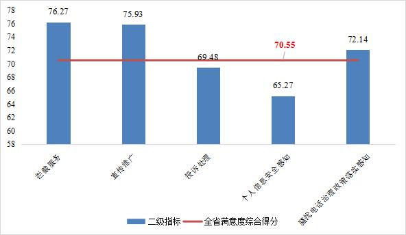 二级指标中“投诉处理”满意度为69.48分,低于河北省总体满意度,投诉“渠道、效率、效果”全流程均存在堵点。