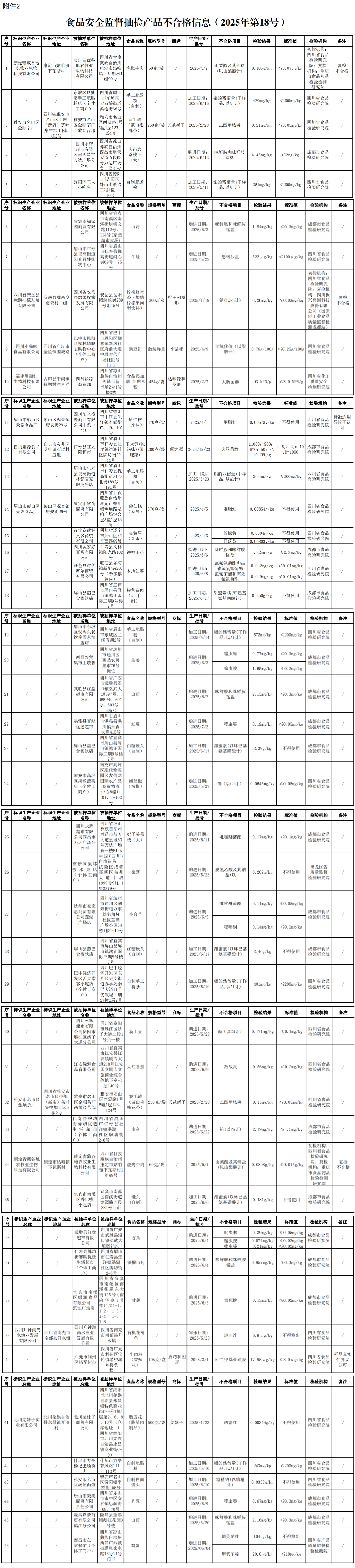 “小猫咪”“达味源”“露之源”“羌妹子”等46批次食品不合格