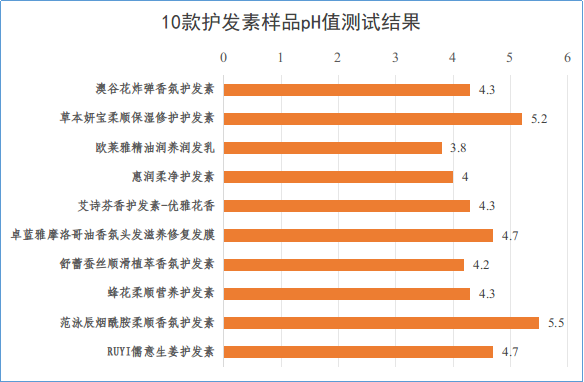 在安全性能方面,本次试验重点检测了pH值、重金属和微生物3类指标,结果均达标。20款样品的pH值均处于3.7—5.5之间,符合QB/T1975—2013《护发素》和QB/T4077—2010《焗油膏(发膜)》的标准要求。其中,11款样品的pH值低于4.5,而有研究表明4.5—5.5的pH范围更适合头皮和毛发健康,过高或过低均可能导致头发干涩、头皮发痒。