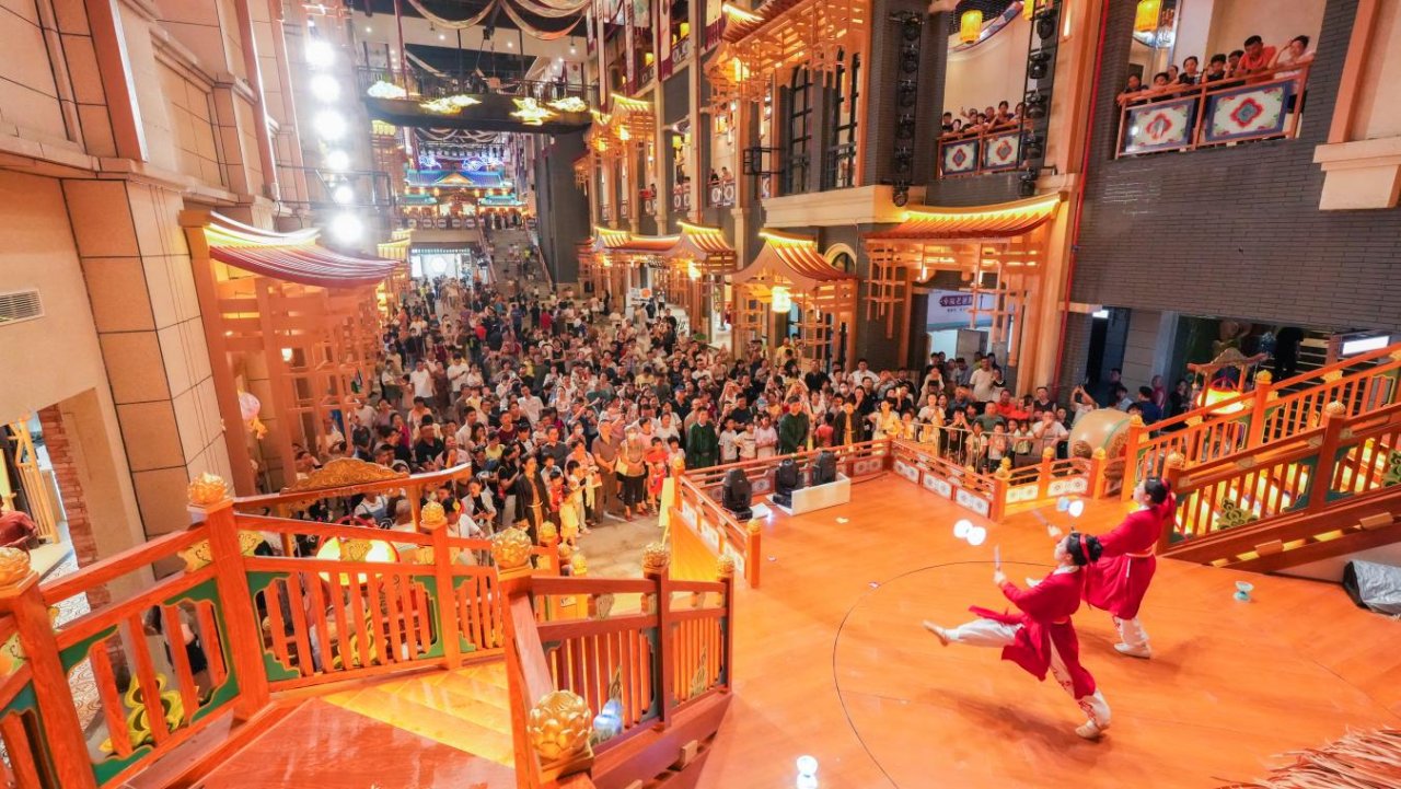 据了解,东坡老码头围绕“文化+旅游+商业”融合模式,布局八大主题业态与五大沉浸式游览动线,成功引入东坡幻沉浸馆、东坡鲜生等文化体验站点,以及多个海南首进品牌与非遗产品,构建丰富多元的消费矩阵。街区以宋式美学为基调,打造多处电影级场景和全天候演艺内容,通过无界实景演出和人物互动,为游客营造“一秒入宋”的沉浸氛围。