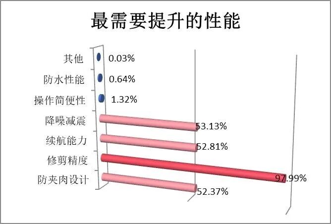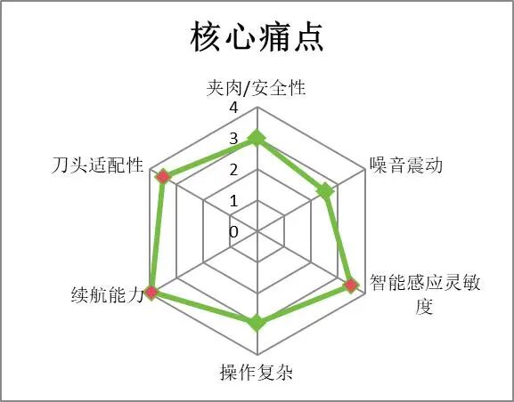 在技术升级上,纳米防菌刀头和AI修剪路径规划(均为4.9分)两项技术最受消费者认可,太阳能充电等“小众创新”需求较低,消费者更倾向于安全可靠前提下的实用型创新。
