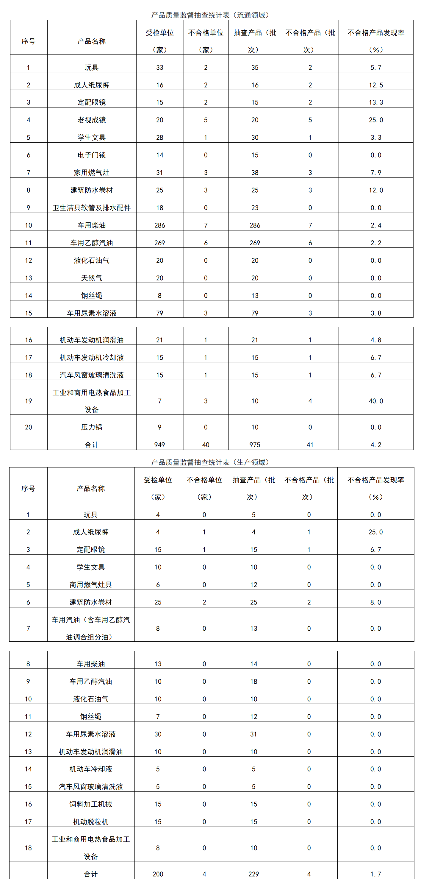 本次共抽查玩具等24种产品1204批次,其中抽查经销单位949家975批次,抽查生产企业200家229批次。经检验,经销单位40家41批次产品不合格,不合格发现率为4.2%,生产企业4家4批次产品不合格,不合格发现率为1.7%。具体如下: