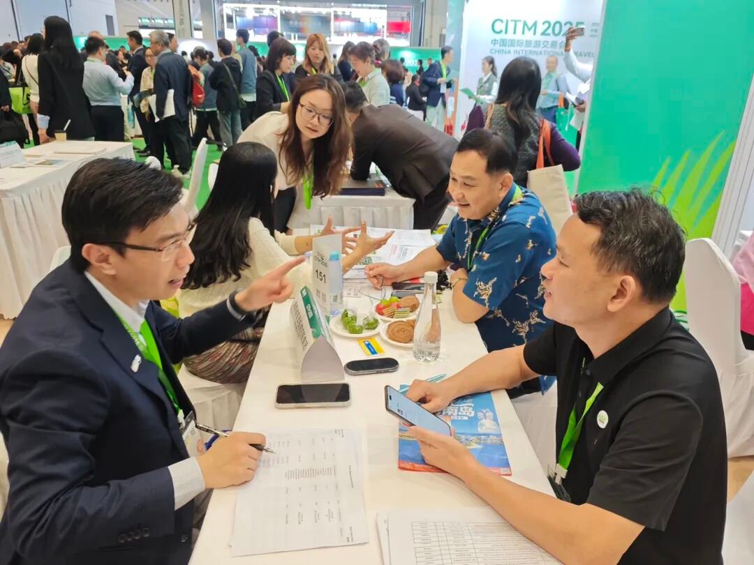 据海南农垦馆相关负责人介绍,本届旅交会现场,他们组建了专业对接团队,围绕“资源互补、需求匹配、长效共赢”三大核心,为来访客商提供全流程精细化服务。展馆内人气高涨,来自国内外的旅游集团、农产品采购商、文旅投资商、数字科技企业及研学机构等约50家客商络绎不绝。这也是全方位展现了海南农垦的多元产业魅力。