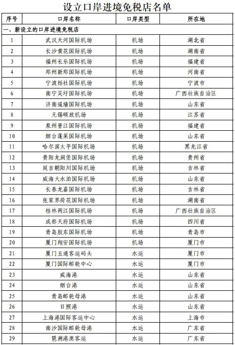 一、在武汉天河国际机场等41个口岸各新设1家口岸进境免税店。其中,横琴口岸进境免税店设立后,允许自澳门进境居民旅客在该口岸进境免税店购买一定数量(15000元以内)的免税商品。