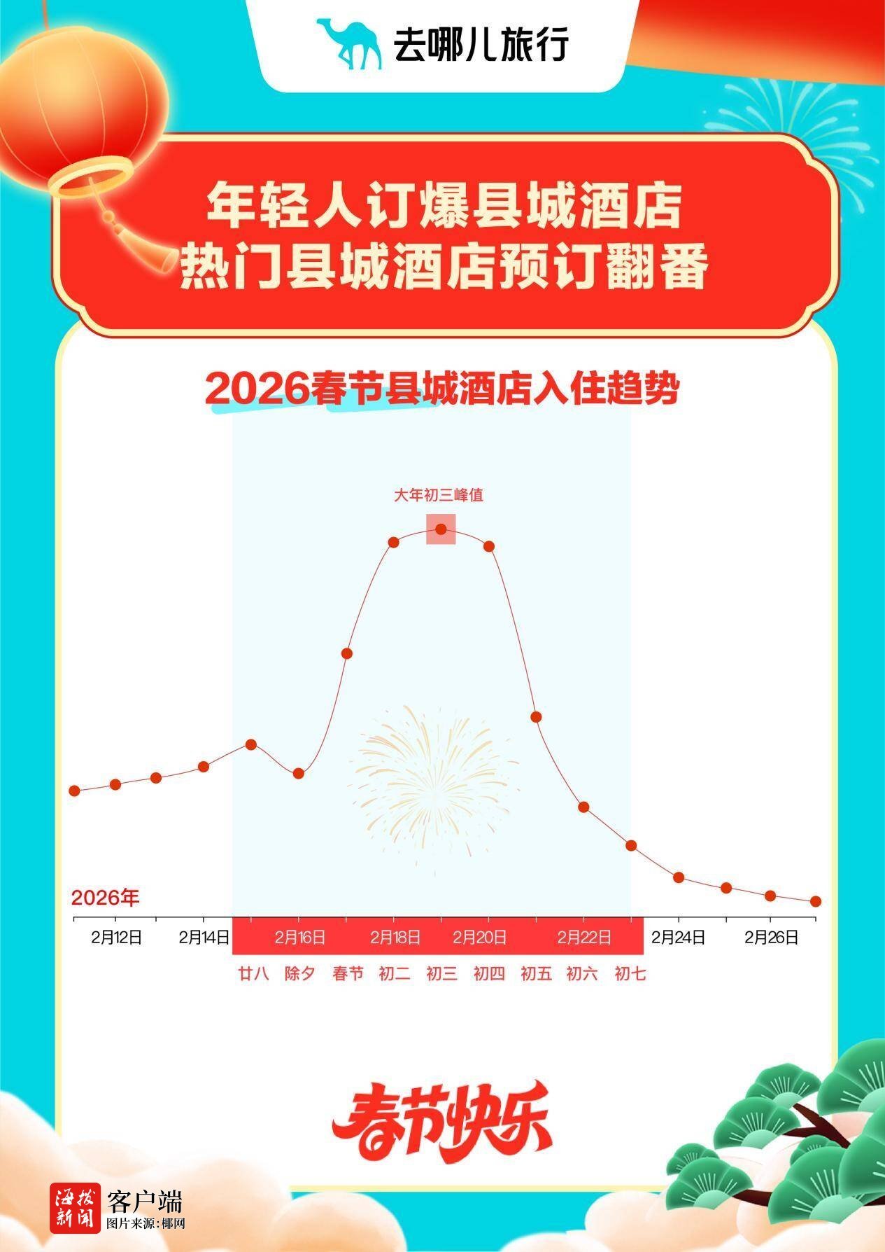 假期多出1天,让2026年春节整体出游热度创历史新高。出外“旅游式过年”,与返乡“过年式旅游”双双爆火,全国不仅各大知名景区人从众,“家门口旅游”也带火了县城里的景区,一批小城迎来了始料未及的“泼天流量”。更多返乡过年的城里人,也把新的生活方式带进了村里,热门县城春节期间酒店预订量翻倍增长。