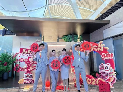 地面服务方面,海南航空值机柜台与贵宾室均布置节日装饰,营造浓厚新春氛围。公司还为从北京、海口出港的旅客准备了马年春节纪念登机牌,增添旅途仪式感。各地自营贵宾室同步开展迎新春主题活动,并推出“12Hai味·迎新春”系列特色美食与互动体验,邀请旅客挥毫写福、纳福迎新,以团圆滋味温暖候机时光。