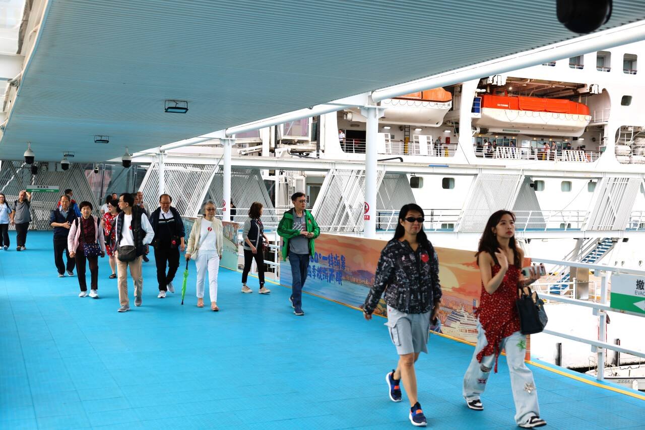 上午8时许,“领航星”号邮轮缓缓靠岸,码头工作人员向到访旅客微笑致意、挥手欢迎。联检大厅内外灯笼高挂、彩旗飘扬,处处洋溢着喜庆祥和的元宵节日氛围,让来自中国、马来西亚、新加坡、智利等国家和地区的旅客倍感节日温暖。
