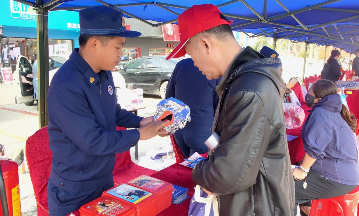商报全媒体讯(椰网/海拔新闻记者 李兴民 通讯员 麦高翔 摄影报道)为进一步规范消防产品市场秩序,提升群众消防产品质量安全意识和识假辨假能力,守护群众生命财产安全,在“3·15”国际消费者权益日来临之际,儋州消防开展消防产品科普宣传活动,以接地气、重实效的方式,将消防产品知识送到群众身边,筑牢消防安全“防护网”。