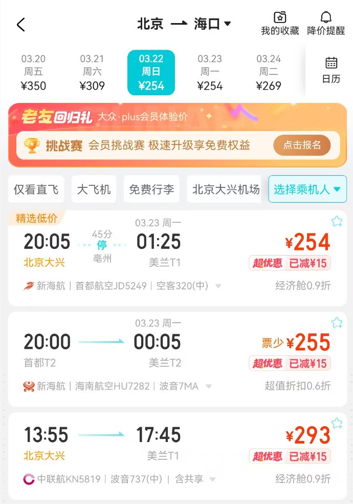 多个旅游平台数据显示,近期北京、上海、广州等全国主要客源城市飞往海南的机票价格出现大幅回落,多数热门航线价格降幅超过60%。