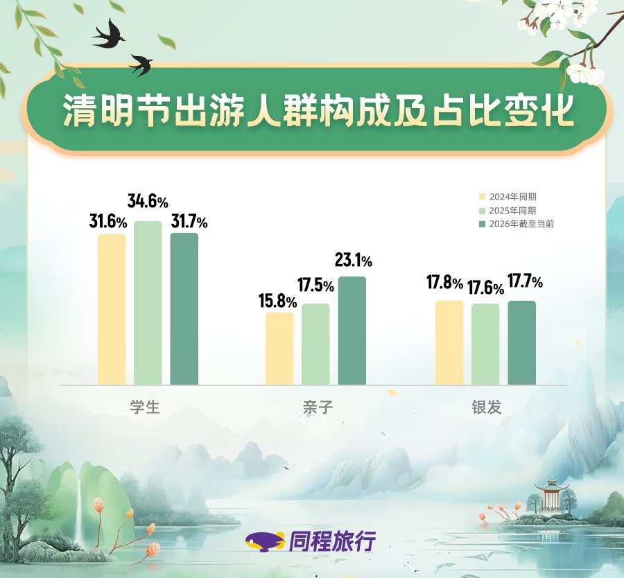 学生春假和员工带薪错峰休假的结合,将进一步推动亲子游、家庭游需求的增长。同程旅行数据显示,截至3月23日,清明出游亲子人群占比接近25%,较往年有明显攀升。平台上亲子研学、博物馆奇遇、海滨度假等主题的跟团游产品持续热销中,超60%家庭选择4天—5天行程。