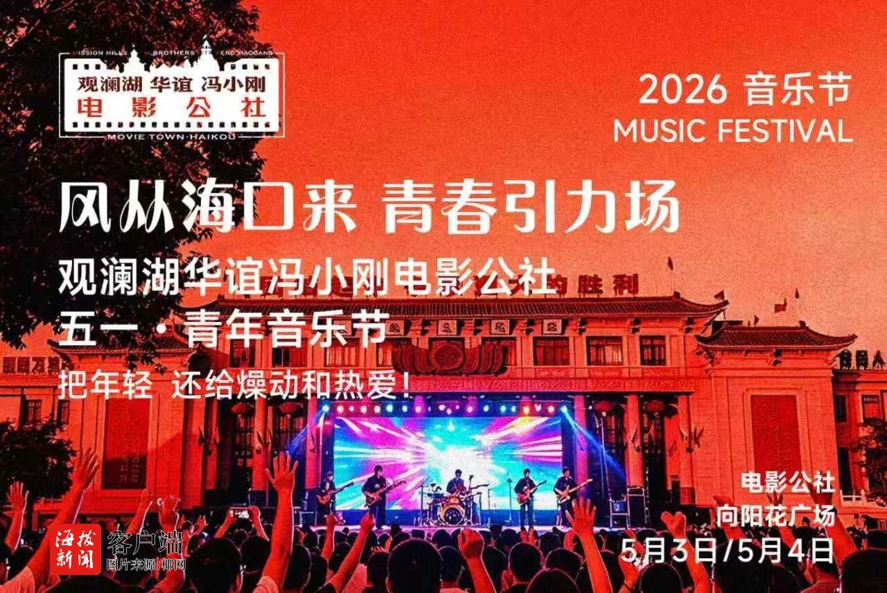 商报全媒体讯(椰网/海拔新闻记者 张艺 通讯员 郑露溪)4月24日,记者获悉,今年五一假期,海口观澜湖华谊冯小刚电影公社将以“年代生活漫游”为主题,开启一场复古怀旧与潮流时尚交织的文化盛宴。作为本次活动的核心亮点,“风从海口来 青春引力场”青年音乐节将于5月3日至4日重磅登场,标志着电影公社正式以音乐节为抓手布局“演艺+旅游”新赛道。