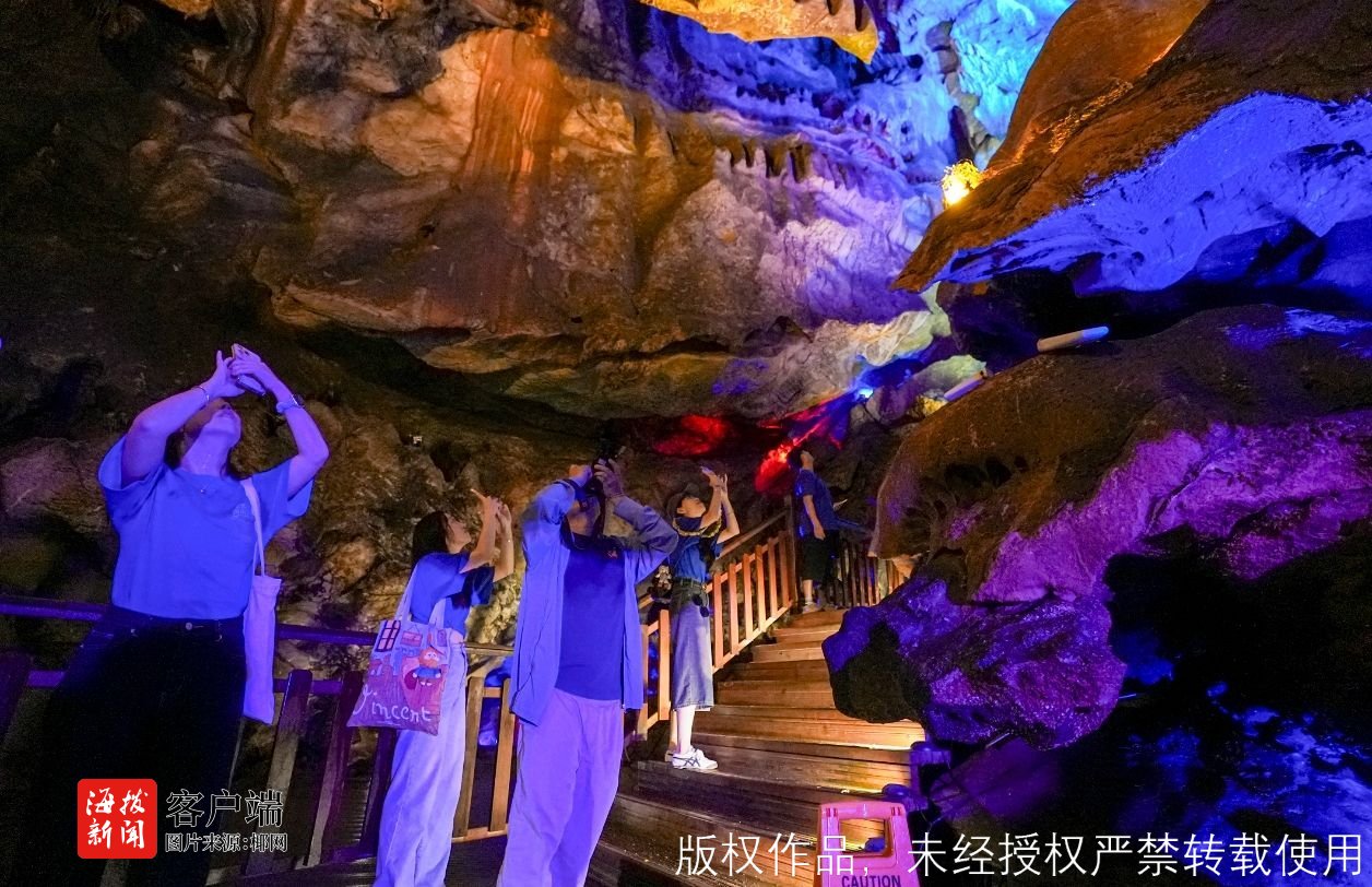 采风团还走进了东方娥仙岭生态文化旅游区,这里奇特的热带雨林喀斯特地貌让人惊喜不已。在娥娘洞溶洞内,千姿百态的钟乳石在灯光映照下呈现出梦幻般的色彩,800米的游览路线串联起“娥娘迎宾”“凤凰于飞”“五彩钙田”等奇观,令人叹为观止。