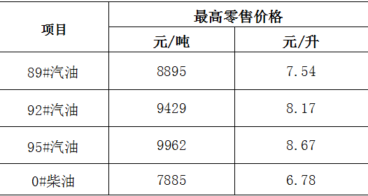 4.表中每升汽油含1.05元车辆通行附加费,0号柴油未含车辆通行附加费。