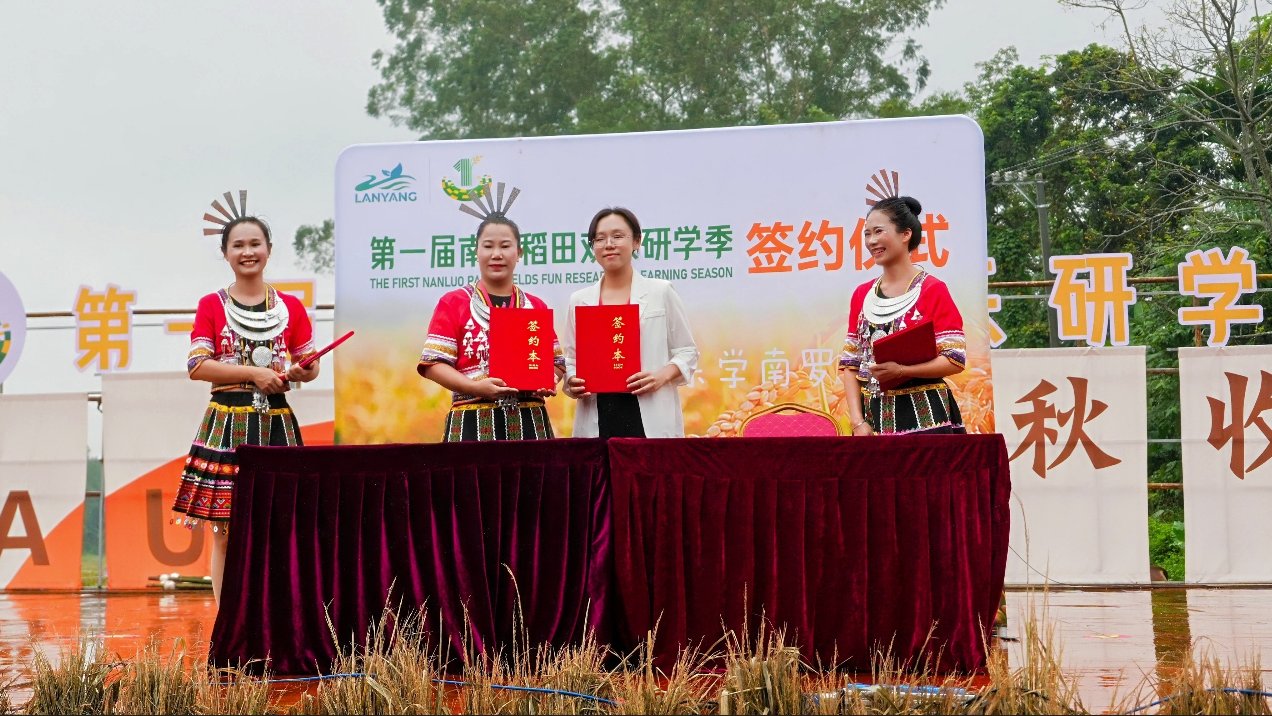 此次活动中,南罗稻田研学基地的运营商与研学机构代表上台签订合作框架协议。根据合作协议,研学机构将常态化组织青少年开展农田课堂研学活动。