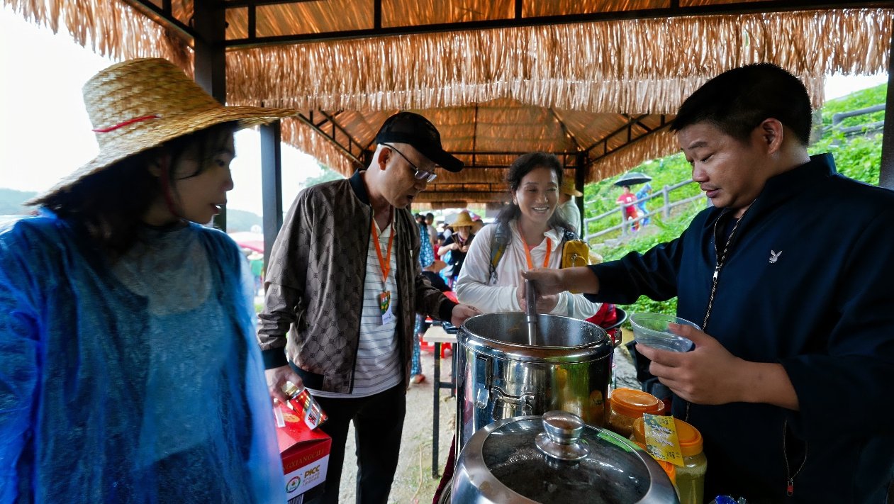 此外,活动现场还设有丰富多彩的展示活动。藤编手作区里,传统编织技艺的魅力吸引不少人驻足体验,感受手工创作的乐趣;农产品区集中展示了当地优质农产品,尽显田园丰收的丰硕成果;美食区则汇聚兰洋黎苗特色美食,香气扑鼻的风味小吃让参与者大快朵颐,直观领略当地文化的独特韵味。