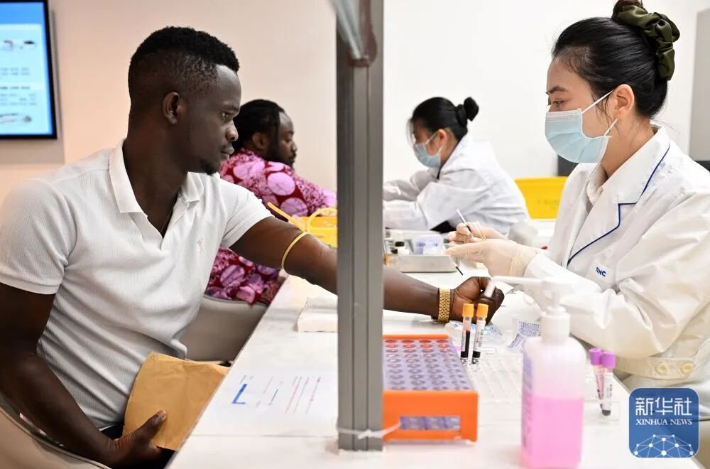 11月27日,外国入境人员在海南国际旅行卫生保健中心进行入境体检。