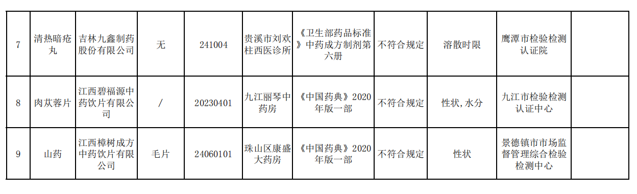 “云龙制药”“鑫辉药业”“九鑫制药”等生产的9批次药品不合格