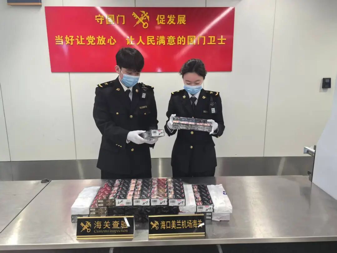 海口美兰机场海关截获包装严实香烟25条,合计5000支