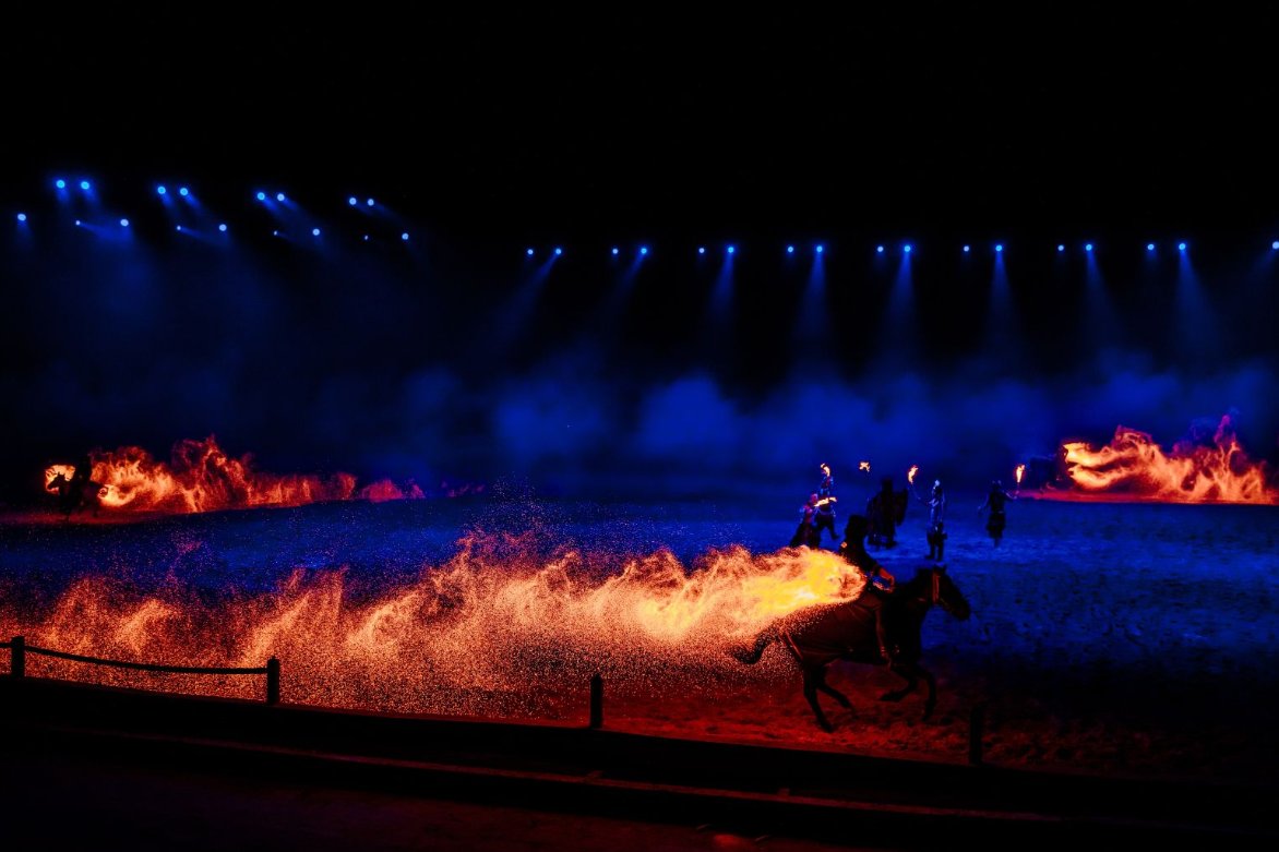 当夜幕降临,项目核心——一座可容纳2800人的露天剧场,化身为前沿科技与马术文化交融的奇幻舞台。大型沉浸式视觉马秀《舞马天涯》融合震撼光影、精湛马术与动人剧情,不仅是视听盛宴,更是点亮三亚海棠湾夜间经济的关键一步。