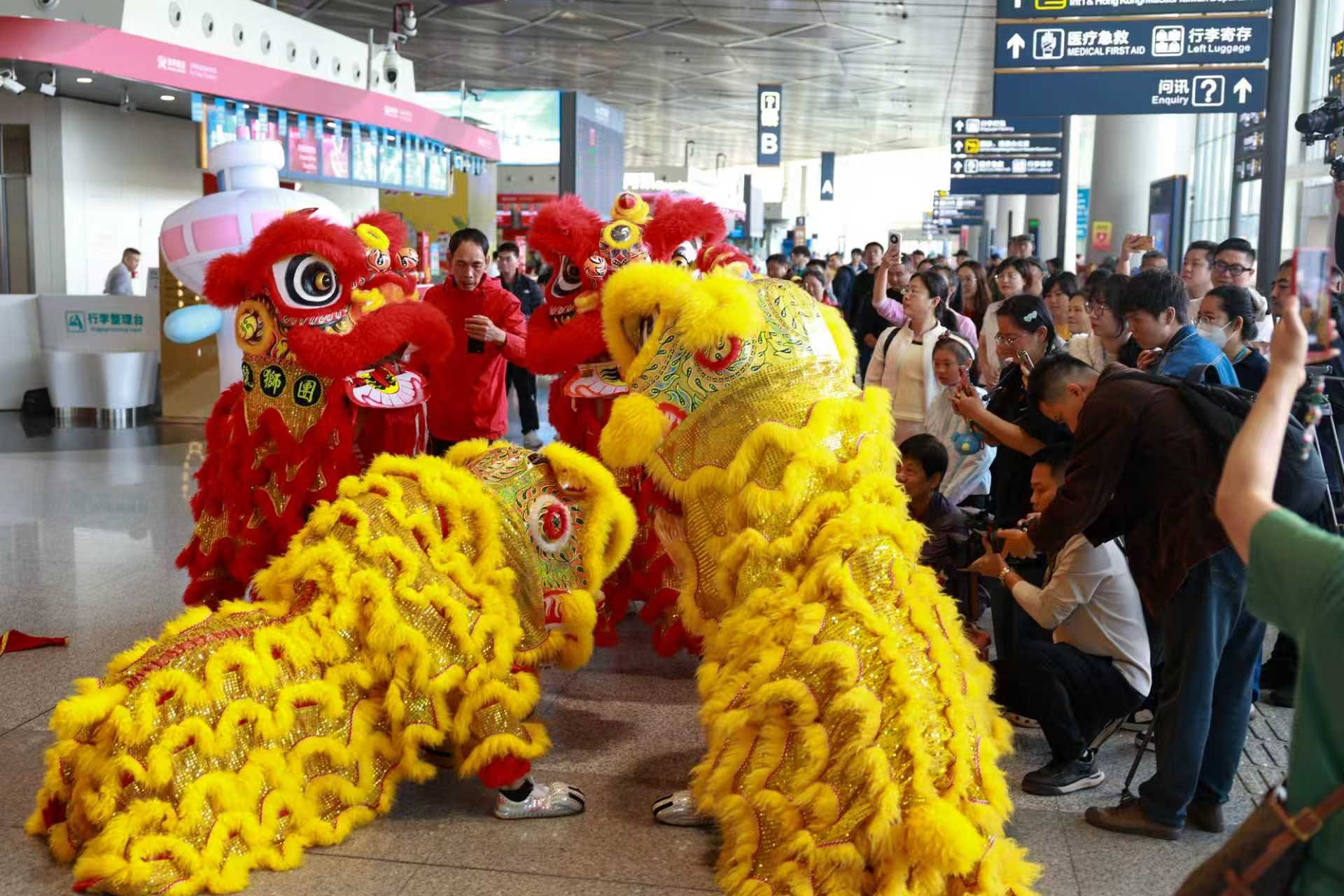 走进美兰机场T2出发厅,一辆绿皮火车造型的主题美陈格外抢眼,这是美兰机场联动椰喜鹿老爸茶礼合力打造的夏南洋·骑楼烟火食集主题市集。在T2国际候机厅内,“海南真好购”春节主题市集,让出境旅客能随手购买具有海南本土文化特色的伴手礼、食品、热餐等。为让旅客能感受到浓郁的新春氛围与海南的特色文化、民俗风情,2月12日—24日,美兰机场携手中新(海南)空港商业管理有限公司,在候机楼持续推出“马上游海南・乐购新春”主题人文活动,现场设有舞龙舞狮、手写春联、福字拓印、黏土手作等充满年味的传统民俗活动。