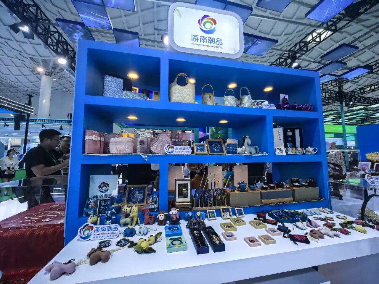 今年海南馆首次推出了“海南潮品”,将海南的特色文化和文创设计相结合,打造一批具有海南特色文化的时尚潮品,为参加消博会的国内外嘉宾游客带来众多可供选择的“海南好礼”。