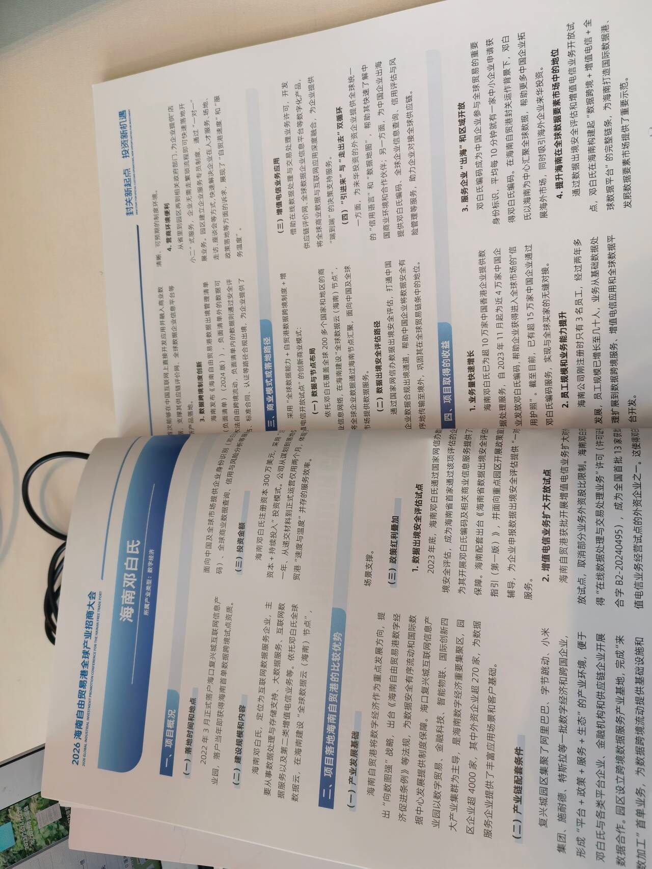 商报全媒体讯(椰网/海拔新闻记者 史若木 摄影报道)4月14日,2026海南自由贸易港全球产业招商大会召开。会上,参会嘉宾均拿到的《海南自贸港典型案例清单》里,罗列了海南自贸港典型案例54个,其中产业落地的39个、跨境跨区合作园区落地的5个、应用场景落地的10个。海南期待以这份典型案例为桥梁,让世界看见海南产业的蓬勃活力与无限潜能,吸引更多企业扎根这片热土,共享自贸港发展新机遇。